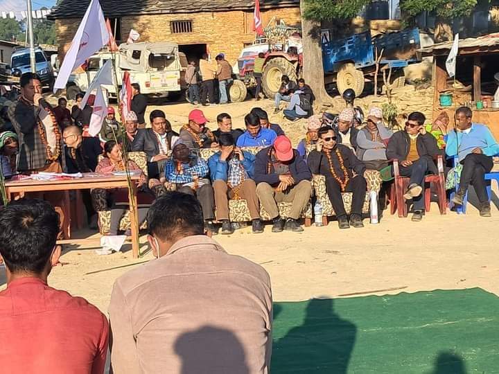 अछाम निर्वाचन क्षेत्र नं १ को सत्ता गठबन्धन नेपाली कांग्रेस, माओवादी केन्द्र र एकीकृत समाजवादीको घरदैलो कार्यक्रम बान्निगढी जयगढ गाउँपालिकाको वडा नं ५ कालिकामा आज सम्पन्न भएको छ । घरदैलो अभियान कार्यक्रममा बोल्दै श्रम रोजगार तथा सामाजिक सुरक्षा मन्त्री एबम प्रतिनिधि सभा क्षेत्र १ का उम्मेद्बार शेर बहादुर कुँवरले नेकपा