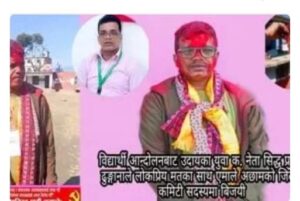 अछाम : विद्यार्थी आन्दोलनबाट राजनीतिमा उदायका युवा नेता क. सिद्ध प्रसाद ढुङ्गाना एमाले अछामको जिल्ला कमिटी सदस्यमा विजयी हुनु भएको छ। ढुङ्गानालाई बजारमा (६३) नामले गर्दा निकै चर्चामा आइरहेको छ। एमाले अछामको पार्टीमा भुमिका निर्वाह गरेपछि सबैको मन जित्दै युवा अबस्थामै सदस्य अत्याधिक मतका साथ विजयी भएका हुन। ढुङ्गानाका सांगठनिक