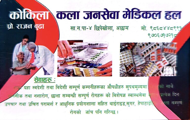 कोकिला कला जनसेवा मेडिकल हलको सेवा क्षेत्र अछामको जयगढ तथा रामारोशन गाउँपालिकाको मुजाबगरसम्म रहेको छ। त्यहाँ कोकिला कला जनसेवा मेडिकल हलको शाखा खोलिएको छ ।