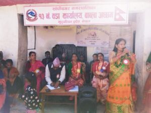 साफेबगर – साँफेबगर नगरपालिका वडा न. १२खप्तडमा रहेको स्वास्थ्य चौकीको आयोजना , सेबक नेपाल सुआहारा २ को आर्थिक सहयोग, वडा अध्यक्ष प्रकाश बहादुर रानाको अध्यक्षतामा कोभिड १९ बिरुद्धको खोपको प्रगती समीक्षा तथा आगामी कार्ययोजना सम्बन्धी वडा स्तरीय खोप समन्वय समितिको बैठक सम्पन्न भएको छ । वडा कार्यक्रममा प्रमुख अतिथि सेवक