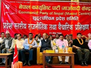 रमेश पुरुष, अछाम । नेपाल कम्युनिस्ट पार्टी (माओवादी केन्द्र ) सुदूरपश्चिम प्रदेश समितिको प्रदेश स्तरीय राजनीतिक तथा बैचारिक प्रशिक्षण कार्यक्रम सम्पन्न भएको छ । कार्यक्रममा केन्द्रिय पार्टी अध्यक्ष कमरेड प्रचण्डले प्रमुख अतिथिको आसनबाट बोल्दै : अरु प्रदेश भन्दा सुदूरपश्चिम प्रदेशमा पार्टीका नेता अगुवा कार्यकर्ता बढी रहेको तर पार्टी भित्र अन्तरद्वन्दका